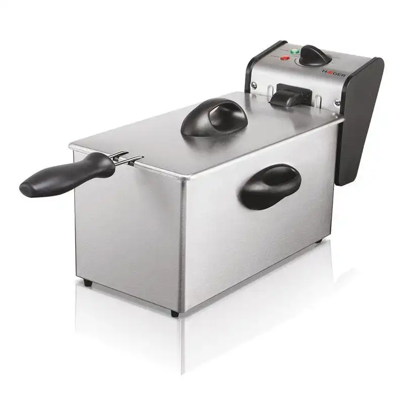 Haeger Pro Chips Plus es una freidora de 4 litros con 2000W de potencia y temperatura regulable hasta 190º. La mayoría de sus partes en acero inoxidable son aptas para limpieza en lavavajillas. Especificaciones Haeger Pro Chips Plus: Material: Tapa cuerpo y cuba en acero Apto para lavavajillas: Tapa cuerpo y cuba Seguridad: Botón Restart Tapa: Extraíble Potencia: 2000W Capacidad: 4L Control de temperatura: Hasta 190º