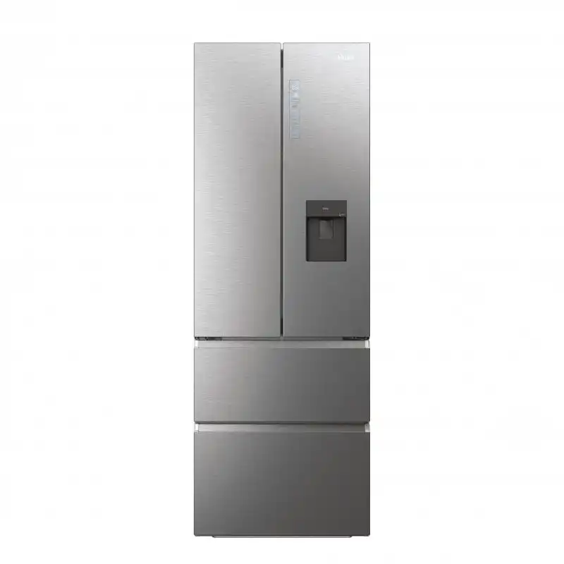 El frigorífico americano Haier FD 83 Series 7 Hfw7819Ewmp, con tecnología Total No Frost para evitar la escarcha de tu frigorífico, conexión Wi-Fi y entre tantas prestaciones que harán fácil tu día día en tu hogar. Conectividad en todos los sentidos Gracias a la App hOn, puedes aprovechar todo el potencial del frigorífico y estar conectado en todo momento, tanto dentro como fuera de casa. Además este modelo posee conexión Wi-Fi. Inteligencia artificial y temperatura correcta en cualquier momento Este frigorífico combi posee inteligencia artificial , esto significa que gracias a la función Temperatura Proactiva, a través de geolocalización que le permite conocer con tu permiso a través de la App hOn, se asegurará que siempre esté a la temperatura adecuada para cuando llegues a tu hogar con la compra. Un sistema de iluminación que te envuelve Daylight LED Gracias al sistema que posee este frigorífico combinado Haier, ilumina todos los rincones sin que tengas que preocuparte de coger una linterna o algún elemento para iluminar lo que buscas, hace que cada estante sea visible y a la vez más facil de encontrar todos tus alimentos en un solo vistazo. Es una de las luces más brillantes las de Daylight Led , sin embargo no afecta a tu visión ya que es suave y agradable a la vista ya que se ilumina de forma progresiva. , Encuentra todo lo que buscas en un solo vistazo Haier cada vez incrementa la facilidad de los usuarios a la hora de encontrar sus alimentos en el frigorífico, es por ello que en este incluye los cajones Direct Acccess . Además de ofrecerte un fácil acceso a tus alimentos congelados, también una vista totalmente clara y mejorada en el contenido. Comparado con un frigorífico de puertas con bisagras normales, a uno con cajones independientes hace que el frio no se escape, reduciendo un consumo energético hasta en un 30%. Conservar los alimentos no había sido tan cómodo hasta ahora Gracias a los cajones, Humidity-Zone . Puedes mantener la fruta y verdura el doble de tiempo frescos, regulan mecánicamente la humedad hasta 90% conservando la frescura de los alimentos sin que pierdan sus propiedades nutricionales… Duradero, silencioso y eficiente El Motor Inverter, es uno de los más silenciosos de mercado. Reduce el desgaste y las vibraciones del motor, reduciendo a su vez el nivel de ruido y el consumo energético. Este tipo de motores en Haier cuentan con una garantía de 12 años. Agua fresca en cualquier momento con Haier Este Frigorífico americano - Haier, tiene dispensador de agua en la puerta , con deposito de este modo no necesitaras preocuparte por tus botellas, lo único que debes hacer es rellenar tu deposito de agua. *Este frigorífico cuenta con dispensador de agua con depósito en el interior, así que NO necesitarás tener una instalación de toma de agua para poder disfrutar del dispensador cuando quieras. No posee dispensador de hielos, pero si podrás introducir cubiteras en tu congelador.