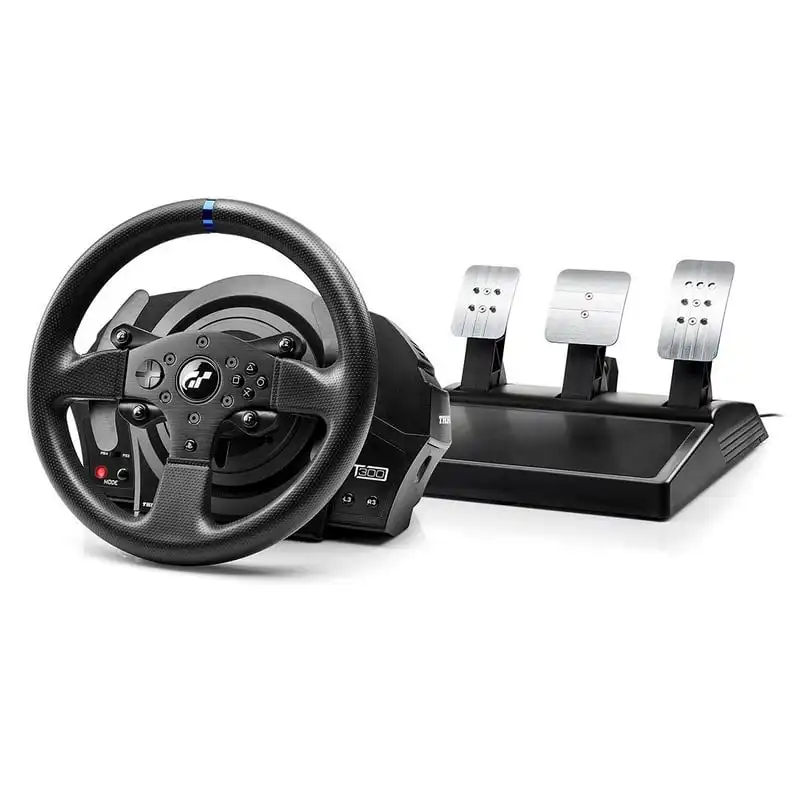 Conviértete en un auténtico piloto de carreras con el volante T300 RS GT Edition. Disfruta del realismo que ofrece el volante Thrustmaster. Conéctalo a tu consola Ps4, PS3 o PC, ánclalo en cualquier mesa y goza de las mejores carreras. Las características del volante son: Prestaciones - Volante desmontable estilo de carreras de GT - 2 levas grandes fijas de cambio de marchas - Incluye el juego de pedales T3Pa Edicion GT, - Nuevo mecanismo optimizado de correa doble Volante - 28 cm de diámetro - Logotipo oficial de GT - 13 botones de acción (incluyendo 2 en la base) + 1 D-pad. - Botones oficiales de PlayStation®4 Pedales - 3 pedales y una estructura interna 100% de metal - Ajustable en altura.