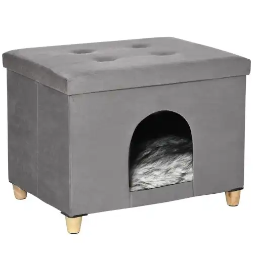 PawHut cama cueva plegable 2 en 1 con taburete gris para gatos