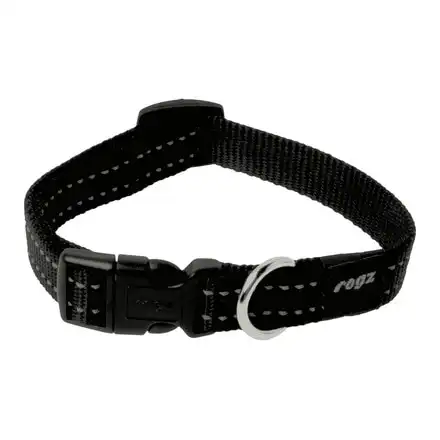 Perros Collares de nylon Rogz Collar "Snake" M Negro Collar para perros fabricado en nylon de máxima calidad, que incorpora un ribete fabricado en material reflectante, para aumentar la seguridad nocturna de su perro. Piezas plásticas redondeadas para aumentar el confort. Anilla metálica sin soldadura, máxima seguridad.