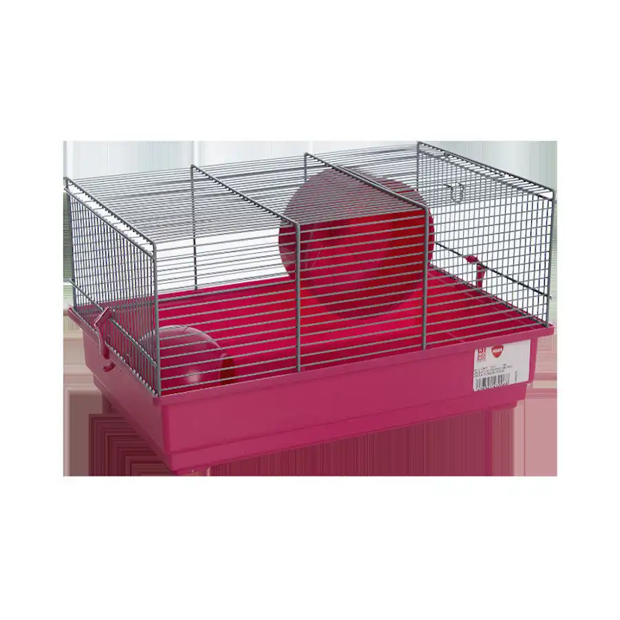 Jaula Small life para la comodidad de hámsteres La jaula Tundra Rosa es ideal para que los hásmteres esten seguro y cómodo, es una jaula con rueda para que se entretenga todos los días, sobre todo en la noche que es cuando están más activos, su material es resistente y tiene prácticos ganchos para que se pueda desacoplar la parte metálica de la bandeja, de esta forma la limpieza se hará más fácil. También posee los componentes básicos para que viva relajado y tranquilo, es apta para hámsteres, si deseas consentir a tu pequeña mascota puedes dejar en la rejilla un rico snack, el espacio suficiente para que se sienta bien y pueda estirarse. VENTAJAS: Tiene el espacio. Viene con una divertida rueda. Es cómoda. Es funcional. Materiales duraderos. Diseño actual. USO Y ESPECIFICACIONES: Jaula para alojar a pequeños roedores como hámsteres. Medidas: 22 cm x 39 cm x 25,5 cm. Material: Plástico. Metal. Peso: 1,09 kg. Recomendaciones: Producto para mascotas no para niños. Retira cualquier embalaje o etiquetado antes de usarlo. Supervise a tu mascota durante su uso. Si el producto se dañara retíralo inmediatamente. ¡La jaula de Small life proporciona diversión segura!