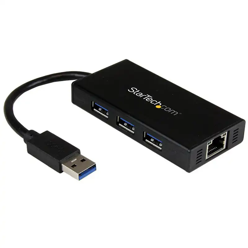 El concentrador portátil USB 3.0 modelo ST3300GU3B incluye un puerto GbE integrado el cual permite ampliar su conectividad con ordenadores portátiles mediante tres puertos externos USB 3.0 así como una red Gigabit a través de una sola conexión USB 3.0. Este concentrador es el accesorio ideal de ordenador portátil para su Microsoft Surface™ Pro 4 Surface Pro 3 Surface Book Dell™ XPS 13 y muchos otros dispositivos.El concentrador con un diseño compacto y de fácil transporte fusiona el soporte para redes Gigabit y el acceso a un concentrador USB 3.0 en una caja de aluminio de peso ligero pero resistente y ofrece los puertos de conectividad indispensables cuyo número suele estar limitado o no existir en ordenadores móviles modernos. Además con el cable incluido de conexión USB 3.0 anfitrión no es necesario llevar otro cable y este dispositivo se puede llevar dentro de la bolsa de su ordenador portátil lo cual ofrece máxima portabilidad. Características: El accesorio perfecto de viaje ya que ofrece más opciones de...