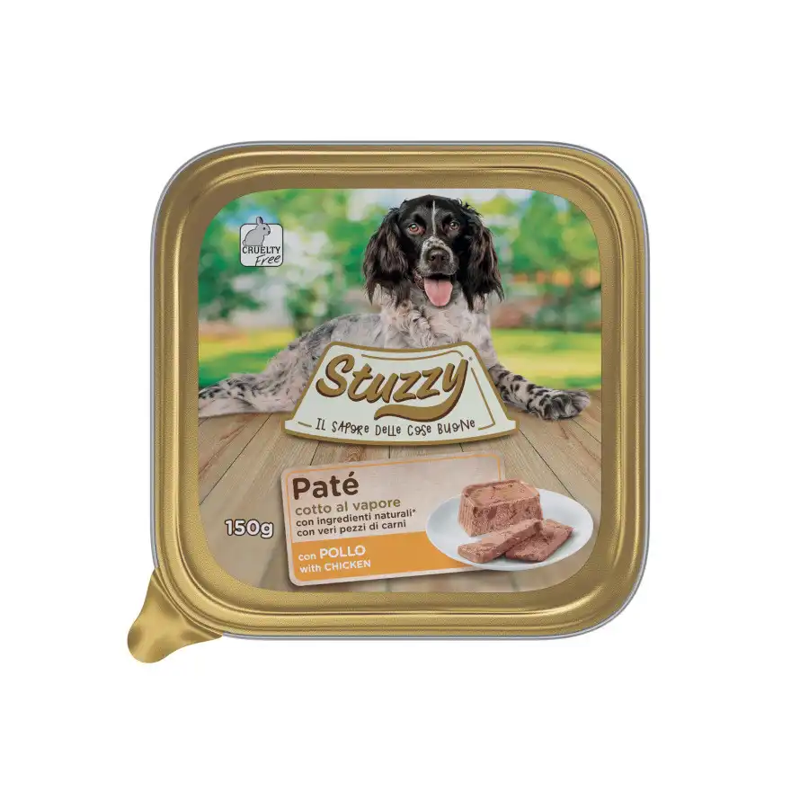 Perros Comida húmeda Stuzzy Dog Tarrina Pollo 150 GR Es un alimento húmedo para perros, con vitaminas y minerales que garantizan una alimentacion y nutricion completa y balanceada. Tarrina Pollo.