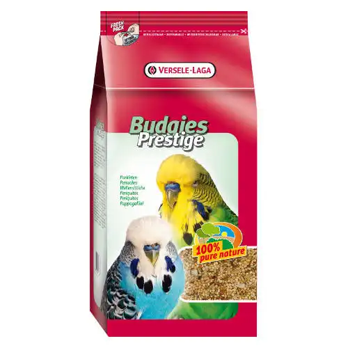 Comida para periquitos Versele-Laga Budgies Prestige. Budgies Prestige es un alimento de la prestigiosa marca Versele-Laga para periquitos que cubre todas las necesidades de tu mascota para una alimentación equilibrada y sana. Es un alimento de calidad pensado para periquitos pequeños y otras aves de la familia de los psitácidos (comúnmente conocidos como loros y papagayos,) también de tamaño pequeño. Como todos los productos de Versele-Laga, este pienso ha sido diseñado con la colaboración de veterinarios, nutricionistas y criadores para ofrecer un producto de la mayor calidad para tu psitácido preferido. En este caso, el fabricante ha optado por una deliciosa receta con alto contenido en vitaminas, minerales y aminoácidos que incluye semillas de mijo amarillo, mijo rojo y mijo blanco entre otros ingredientes. Cuida a tu mascota con una alimentación específica para su especie que le otorgue toda la salud para disfrutar de una cómoda vida en cautividad durante muchos años.