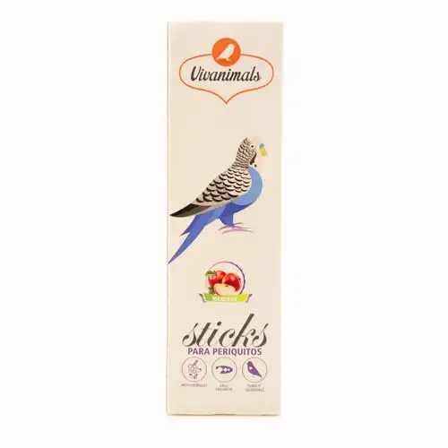 Barritas para periquitos Vivanimals Sticks manzana. Las barritas para periquitos Vivanimals Sticks con manzana son la respuesta más avanzada si estás en la búsqueda de un suplemento nutricional que acompañe a la dieta habitual de tu ave. Se trata de un alimento para pájaros adaptado a las necesidades de los periquitos que les aportará un sabor exquisito, gracias a su mezcla de frutas deshidratadas con semillas de pipas de girasol, escayola, cebada, mijo blanco y rojo, linaza, papaya y piña. Esta combinación no solo le aportará una dosis extra de vitaminas y minerales, sino que también, gracias a su textura, le servirá para limarse el pico. Versele Laga periquitos viene en formato de sticks para que puedas colgarlos en su jauja y estén a disposición del pájaro, según sus demandas. Características: Barritas para periquitos con manzana. Sticks que se pueden colgar en la jaula. Elaboradas con semillas y cereales. Gran aporte de energía. Proteínas de alto valor nutritivo. Detalles del